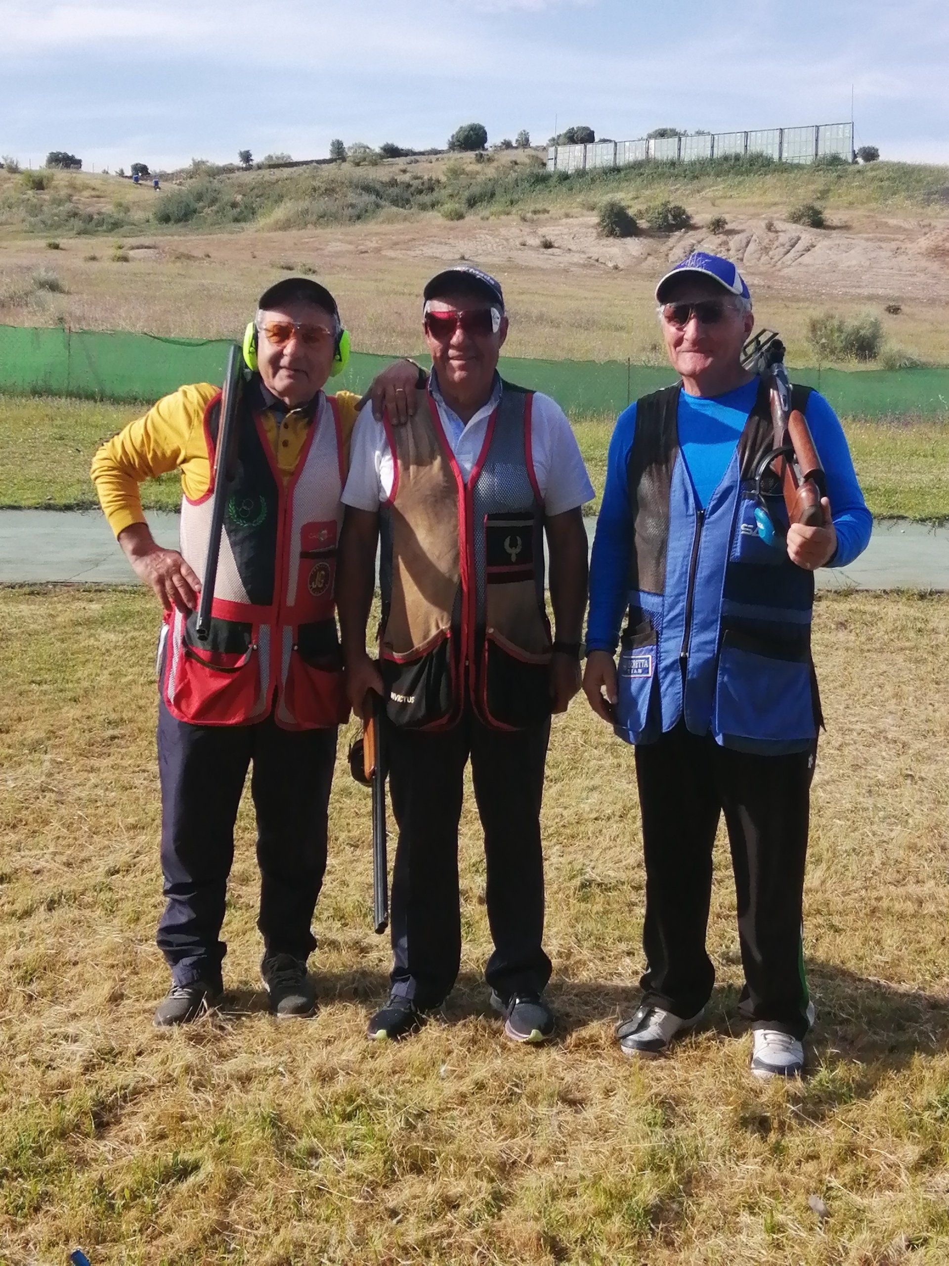 En la categoría de veteranos, el campeón fue Pedro Fernández Jiménez con 108 platos + 39 en la final; el subcampeón fue José Manuel Moñino Núñez con 109 platos + 38 en la final, y el tercer clasificado fue Ramón Barroso Lima con 111 platos + 30 en la final. Queremos dar la enhorabuena también a Lesmes Chamorro y Paco Asenjo por su cuarto y quinto puesto en la final.